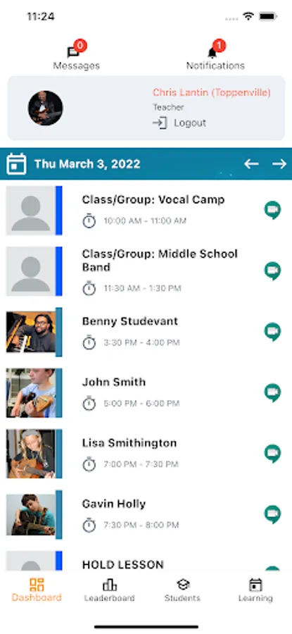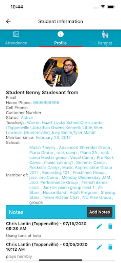 Easy Attendance: From the Dashboard you can swipe right or left to take quick attendance or more detailed report of your scheduled lessons and classes.