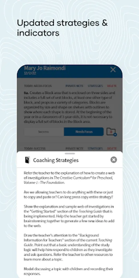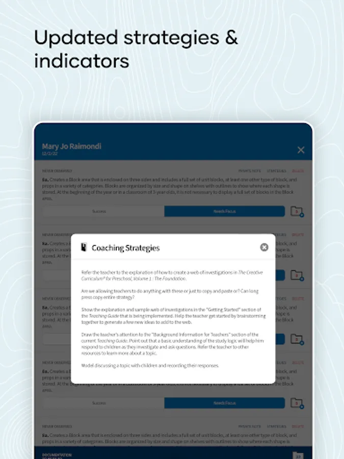 Elevate your coaching practice and boost outcomes for children with Coaching to Fidelity. Access the tools and guidance you need to measure fidelity and effectively guide teachers towards optimal implementation of The Creative Curriculum for Preschool, GOLD, and Infant-Toddlers & Twos. Get best practices tips, tutorials, and access to Teaching Strategies’ enhanced Coaching to Fidelity Strategies and Indicators.