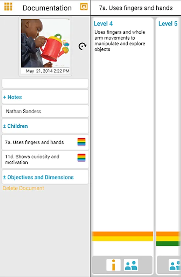 Assess with confidence. Use your iPhone®, iPad®, or iPod touch® to capture photos, videos, audio clips and text notes. Tag documentation and assign preliminary levels. Use a wireless or cellular connection to send data directly to GOLD®. Then log in to the GOLD® Web site to individualize and review documentation and share information with families.