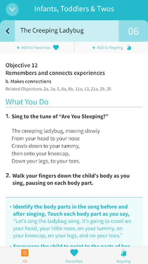 Making the most of every minute with young children has never been easier or more fun! Mighty Minutes® describes short, playful activities that engage young children and support their development in all areas anytime, anywhere. Each interactive rhyme, song and game focuses on an objective for development and learning found in The Creative Curriculum®. You’ll find everything you love about Mighty Minutes® conveniently on your mobile device. That means easy, on-the-go access to all of your favorite cards in one location. With a wide variety of activities to choose from, you’ll never be at a loss to fill those “in-between” moments with warm interactions and meaningful learning.