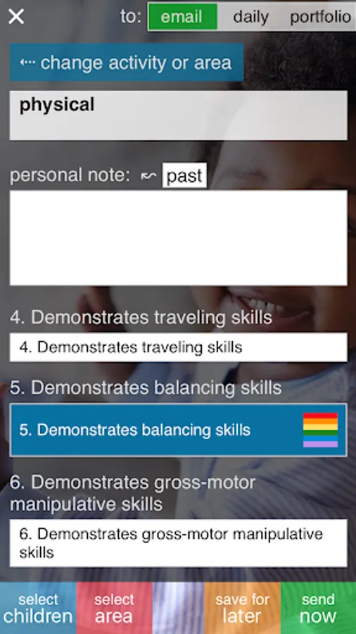 Capture the moment, set preliminary levels and share children’s “Aha!” moments with their families directly from the MyTeachingStrategies® app!