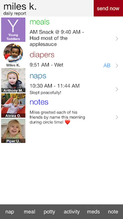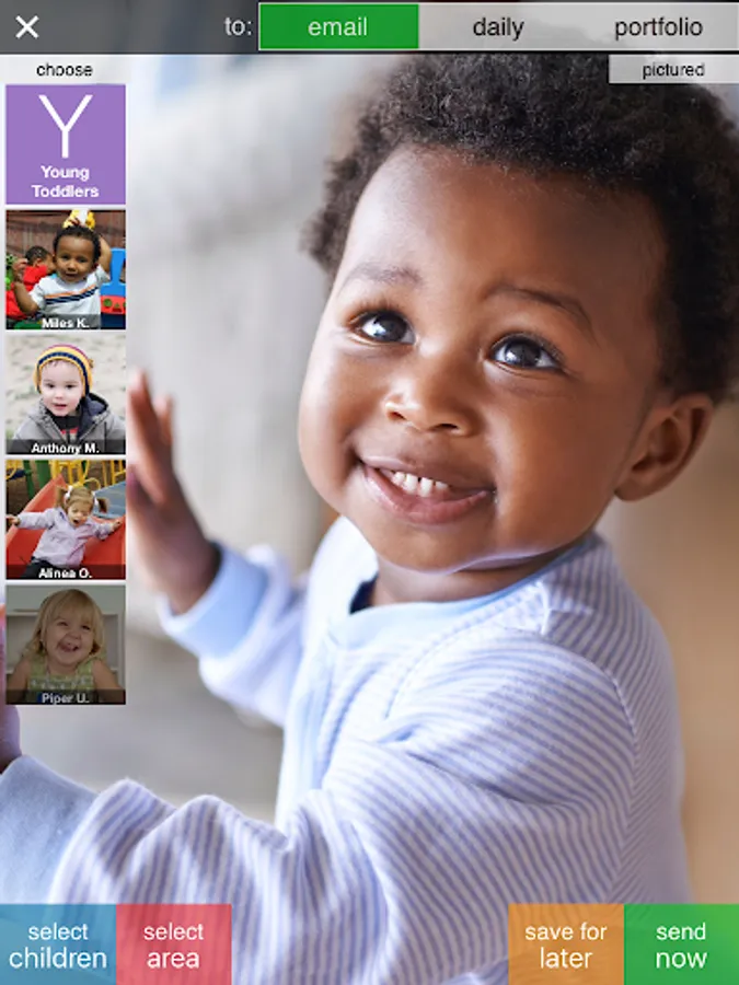 To maintain security and confidentiality, all documentation captured in the app remains within the app until sent to Tadpoles®/MyTeachingStrategies®. Any photos or videos taken within the app will not mix with your personal camera roll. Files captured using the app cannot be sent anywhere other than to Tadpoles®/MyTeachingStrategies®.