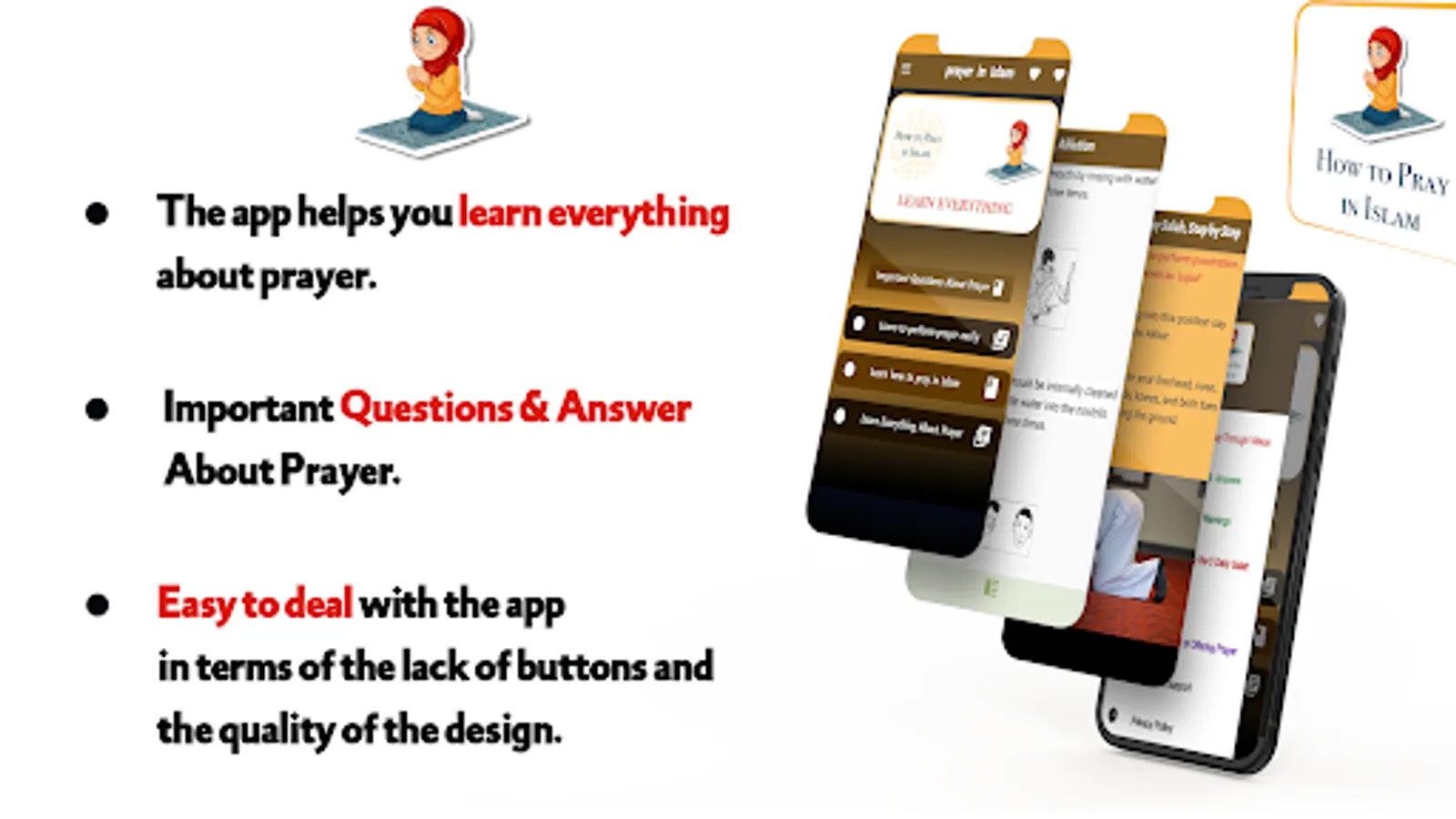 The app Learning Prayer in Islam contain all basics of prayer , Dua after prayer, Dua-e-Qunoot, salat with Picture and audio, method for ladies, method of for men , important Things of to remember, how to perform obligatory fard ,Sunnah, and Witr.