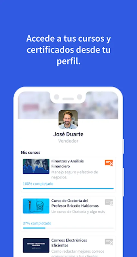 Access all the lessons, videos, audios, articles, documents, evaluations, activities and surveys of your courses and careers.
