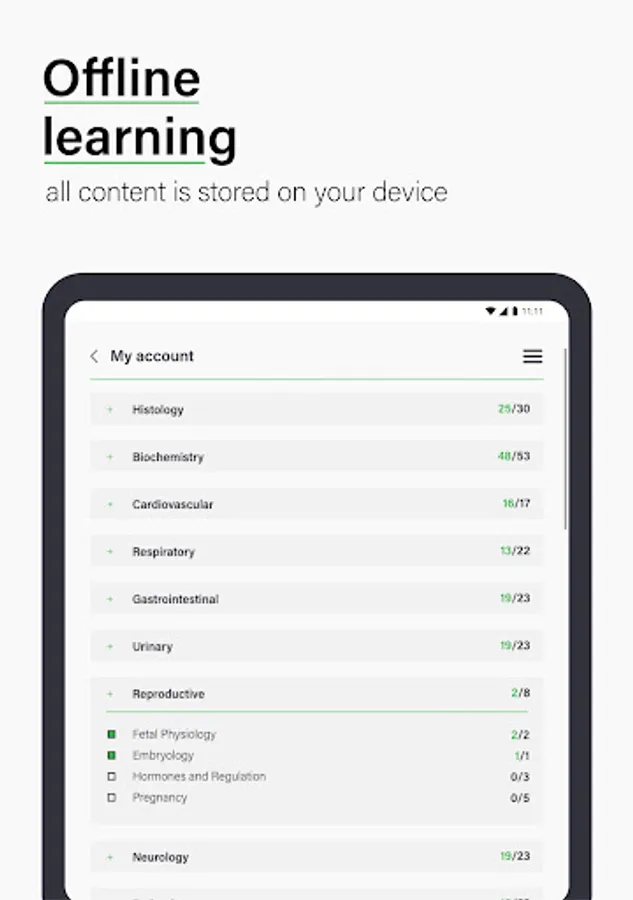 + OFFLINE STORE: Learn anytime, anywhere - all articles, illustrations and quiz questions are stored offline for instant access.