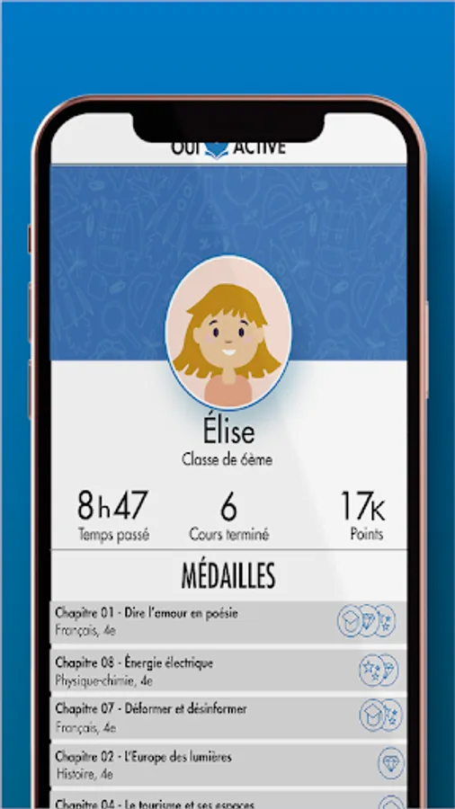 OuiActive est une application éducative qui te permet d'apprendre de manière divertissante et ludique. Grâce à sa simplicité d'utilisation et à ses nombreux jeux, vidéos et cours, tu peux t'amuser tout en apprenant. Nous couvrons les matières suivantes : français, physique-chimie, sciences de la vie et de la Terre, mathématiques, géographie et anglais. Essaie notre application gratuitement pour accéder à des centaines de cours de qualité, QCM et exercices. Nous te fournissons également un suivi efficace et des corrigés détaillés en cas de besoin.