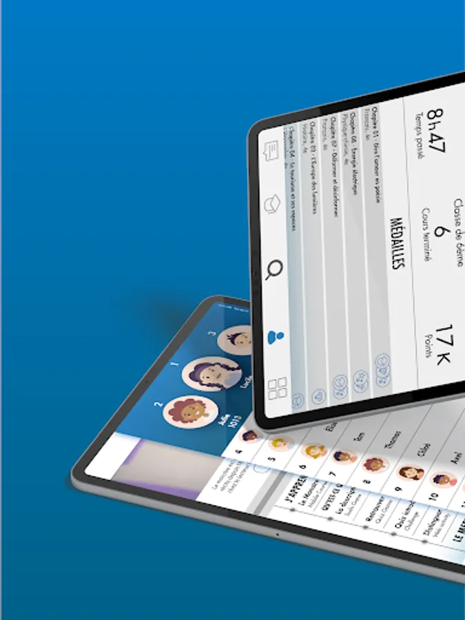 • Un tableau de bord personnalisé où tu peux suivre tes scores dans chaque matière et voir tes réussites et tes progrès.