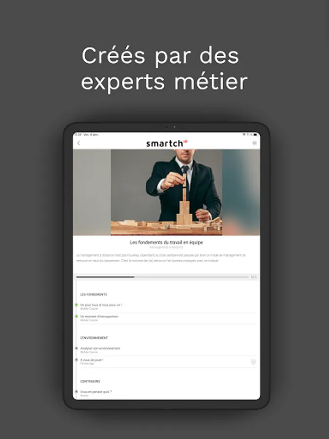 Accessible, through a mobile app solution, your training courses follow you everywhere and are accessible offline at any time.