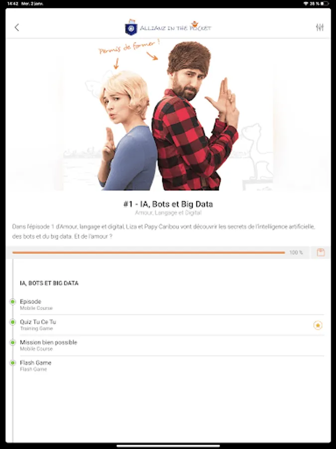 Allianz in the pocket is a learning solution to develop your skills available on all devices (fixed or mobile) and supports you in all situations or you are