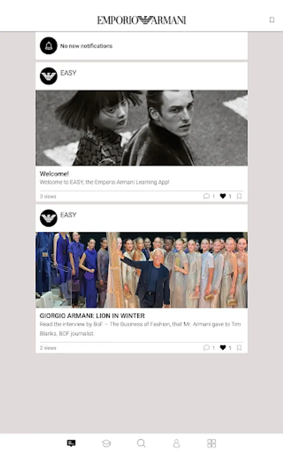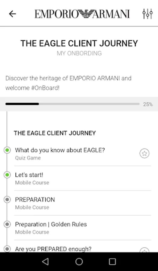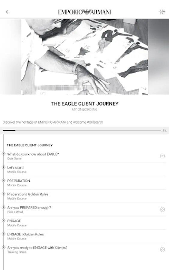 EASY - the E-learning app dedicated to the Emporio Armani teams.
