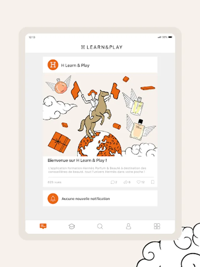 Après son lancement en octobre 2022, venez découvrir de nouveaux contenus à partir de janvier 2023 : les dernières actualités de la maison, un catalogue de formations sur son histoire, ses valeurs, les collections Hermès Parfum et Beauté et encore d'autres surprises.