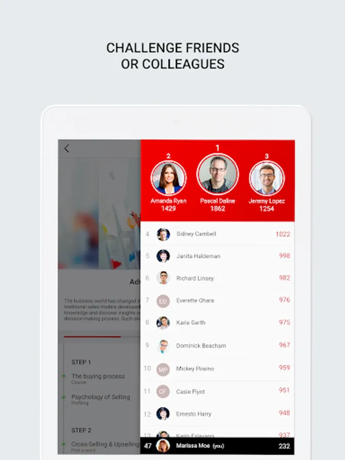 Improve your skills every day with hundreds of fun and varied contents, accessible offline. Customize your profile and preferences. Challenge your friends and colleagues. Earn badges and points to top the leaderboard. Stay up to date with the news feed. Earn certifications and become an expert.