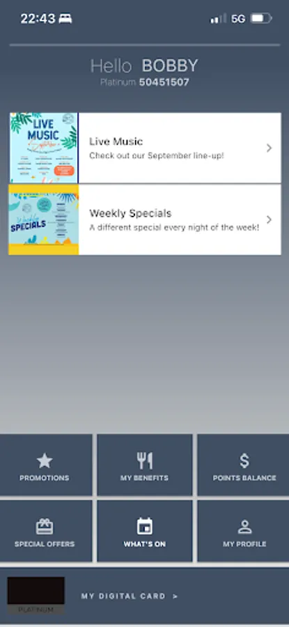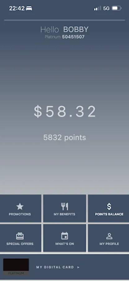 Earn points and redeem for cash or purchase food and beverage with your points.