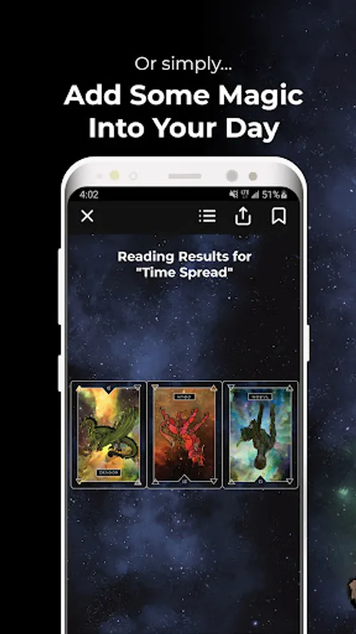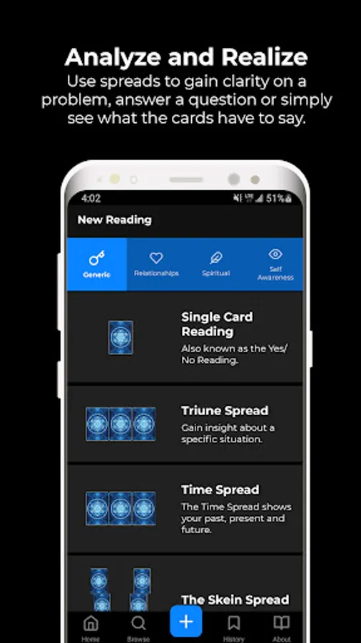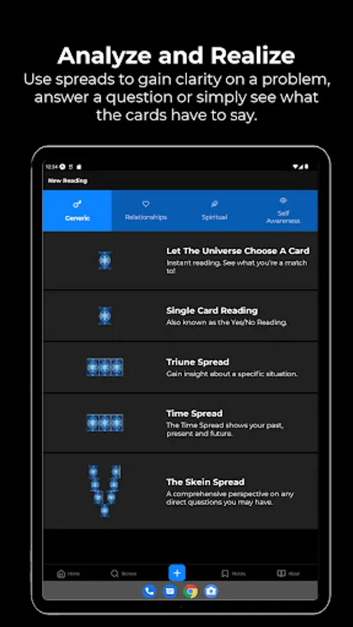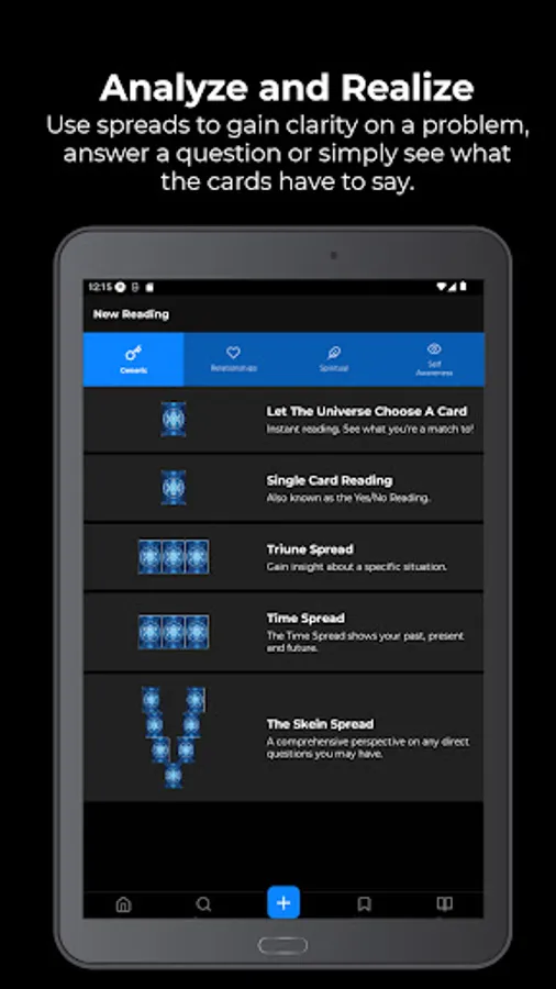 4. Guided Readings - the app features both classic and unique spreads like: Time Spread, Life Path Potential Spread, Relationship Spread, Spirit Guide Spread, etc.