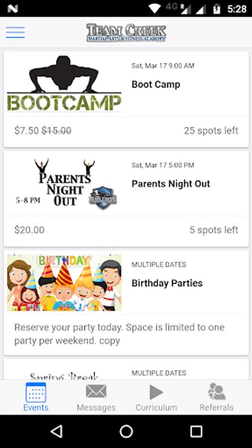 Receive important notifications and announcements for Team Creek Martial Arts, sign up for special events, view curriculum videos, view class schedules and get all pertinent information right on your mobile device.