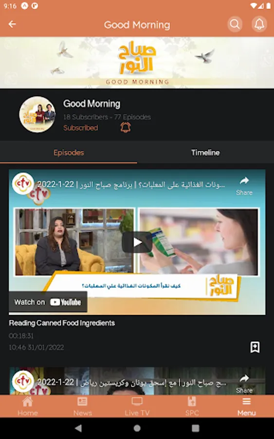 Founded in 2007, CTV has been always reflecting the spirituality, rituals and tradition of the church through presenting spiritual content, in addition to airing the liturgy, prayers, and other church services. Moreover, covering news, discussing social topics and presenting medical advice have also been targeted throughout CTV talk shows and social programs.