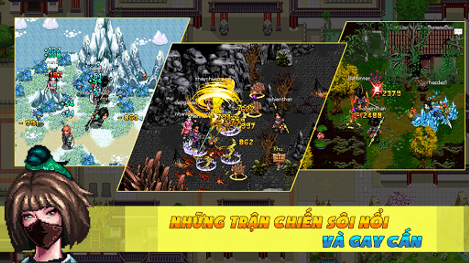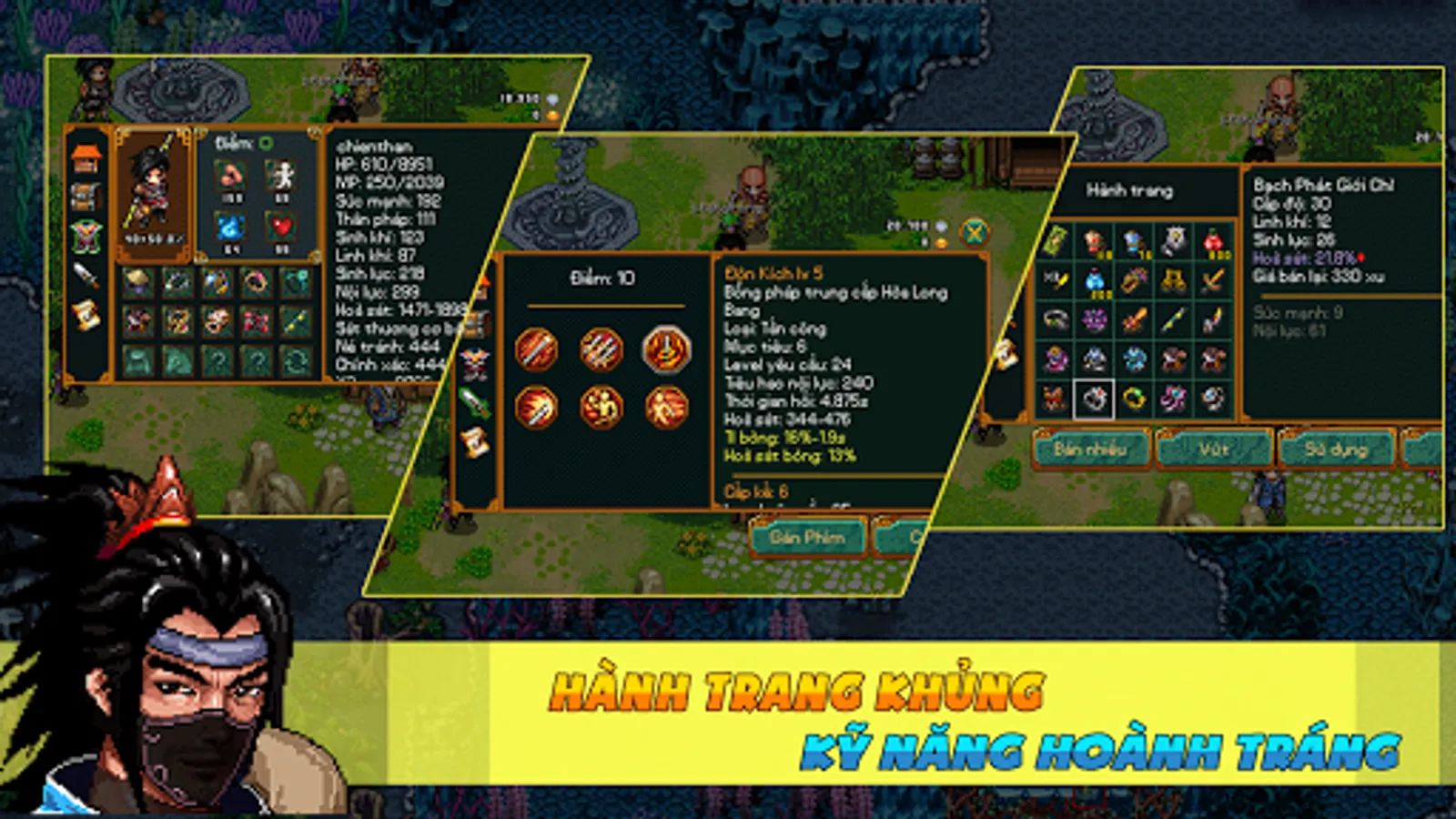The highlight of the game is the PK system simple, easy to play but extremely unique. Systems equipped with the feature-rich as the Congress attractive rate for Vo, where competition between clans, battle ... and it is important functions, events of the game will be updated continuously.