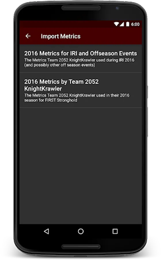 The FRC Krawler scouting system is a tool developed by Team 2052 KnightKrawler that helps FIRST Robotics teams scout and compete effectively at competitions. We’ve created an app that allows you to define your own custom metrics. There is no need for an internet connection or USB dongles. FRC Krawler uses bluetooth to send data throughout the entire app.