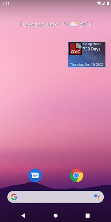 Includes a home screen widget to watch the count down to going "Home".
