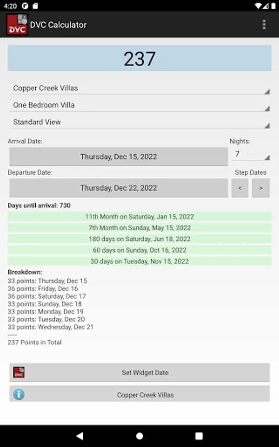 DVC Calculator by TeamSoftware Solutions. Calculate Disney Vacation Club points for specific dates based on the resort, room, and view.