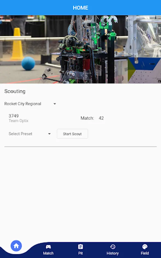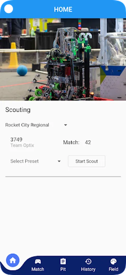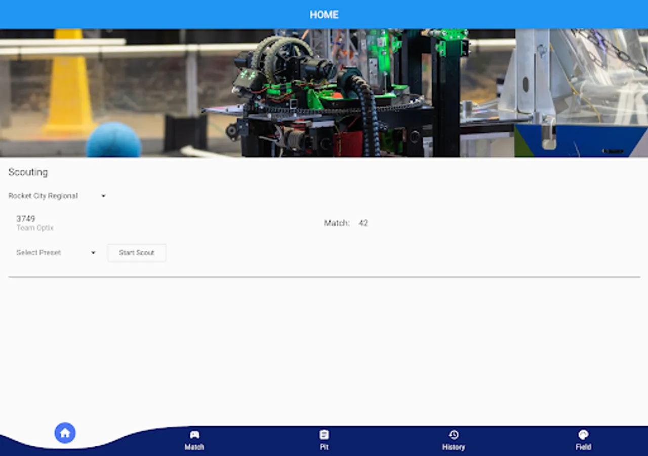 Optix Scouting is a tool used by FRC teams to streamline scouting of matches during competitions.