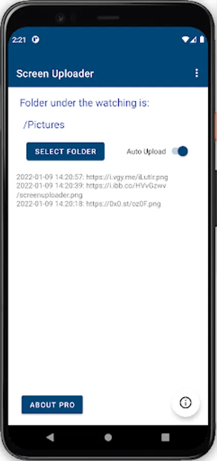 - if you have issues with upload to pictures hosting after reboot (with Auto Upload ON), please check "Battery saving / Power saving" settings on your device and add 'Screen Uploaded' in power-saving exceptions list.