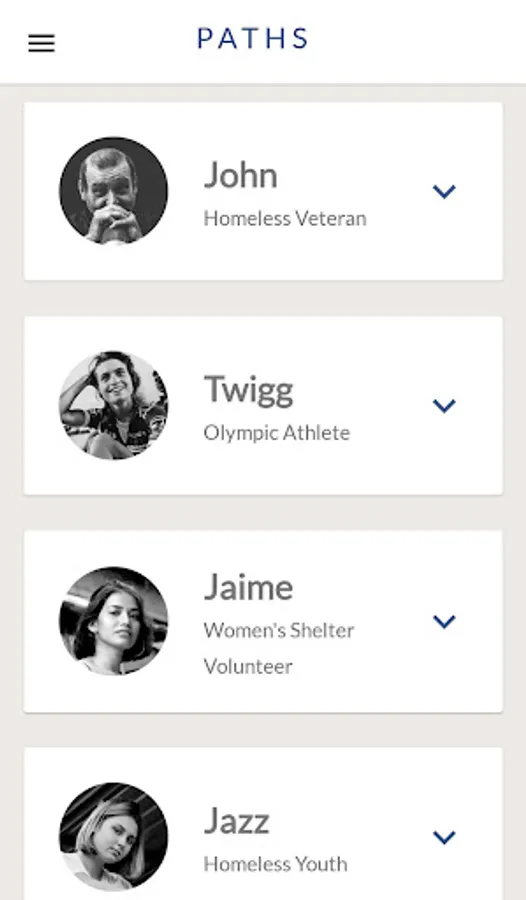 Paths attempts to mitigate misconceptions and stereotypes about homelessness by presenting stories of homeless people in a decision-based, interactive way.