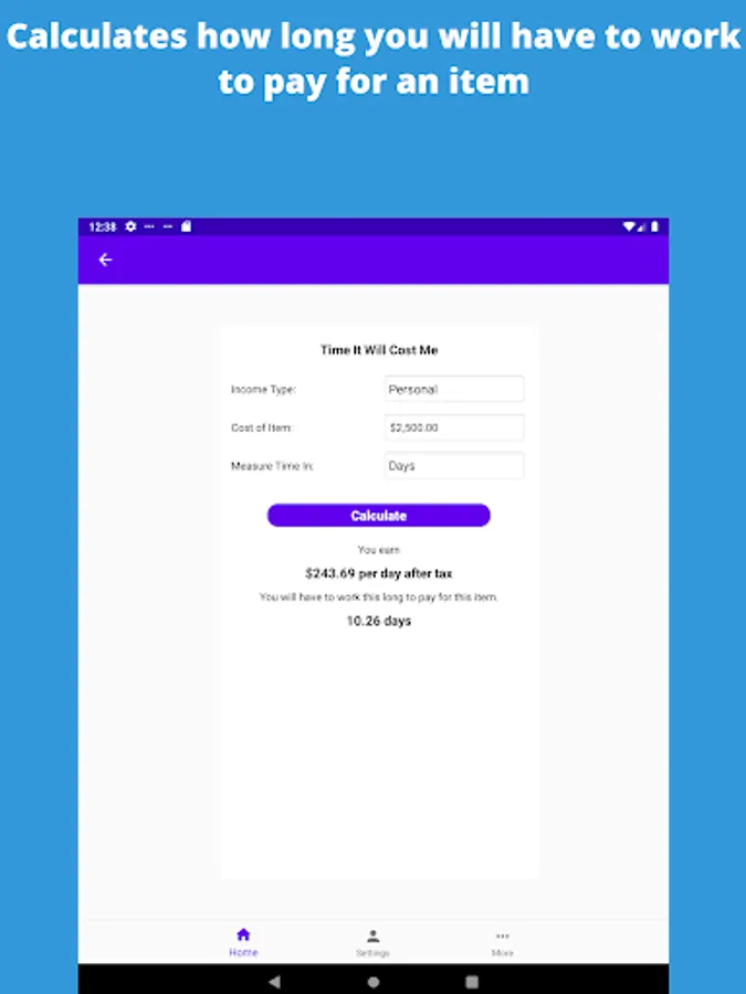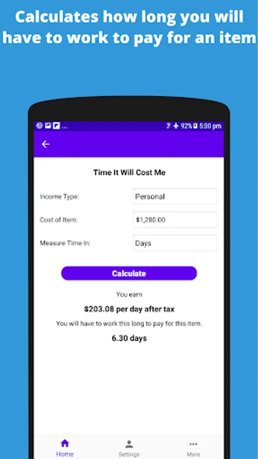 1. Time It Will Cost Me: Calculates how long you will have to work to pay for an item.