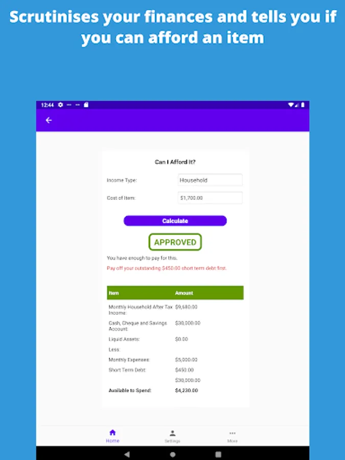 Ever wondered if you should spend your money on something you always wanted? This app helps you have the financial confidence to make a wise decision to buy something based on your financial numbers.