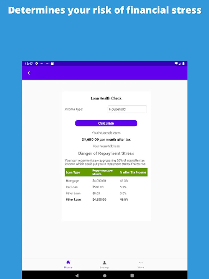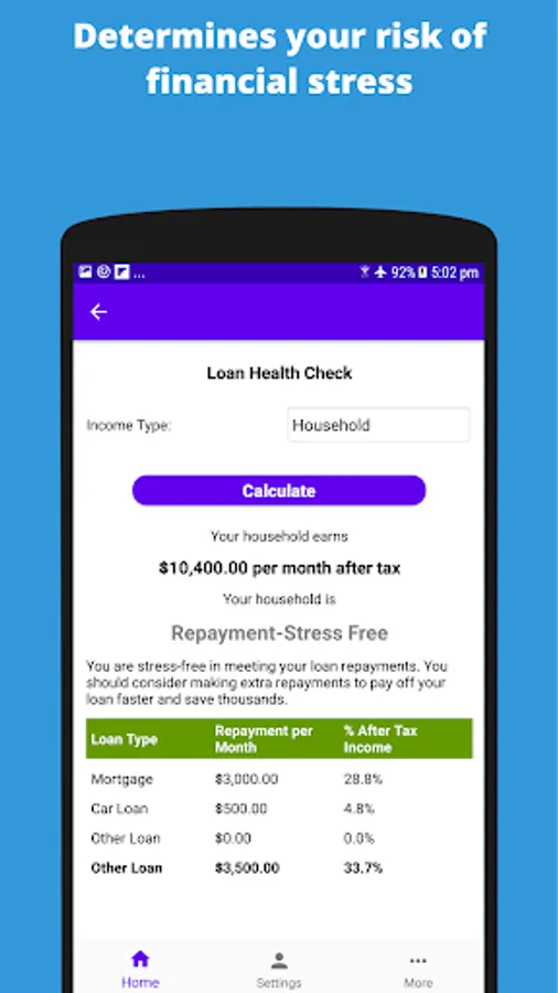 8. Loan Health Check: A loan repayment stress test that determines your risk of financial stress.