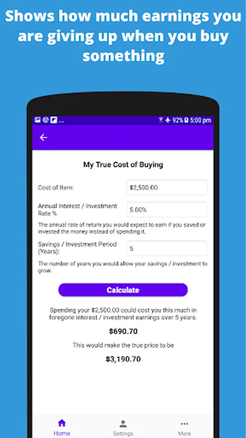 2. My True Cost of Buying: A calculator that shows how much interest / investment earnings you are giving up when spending on non-essentials.