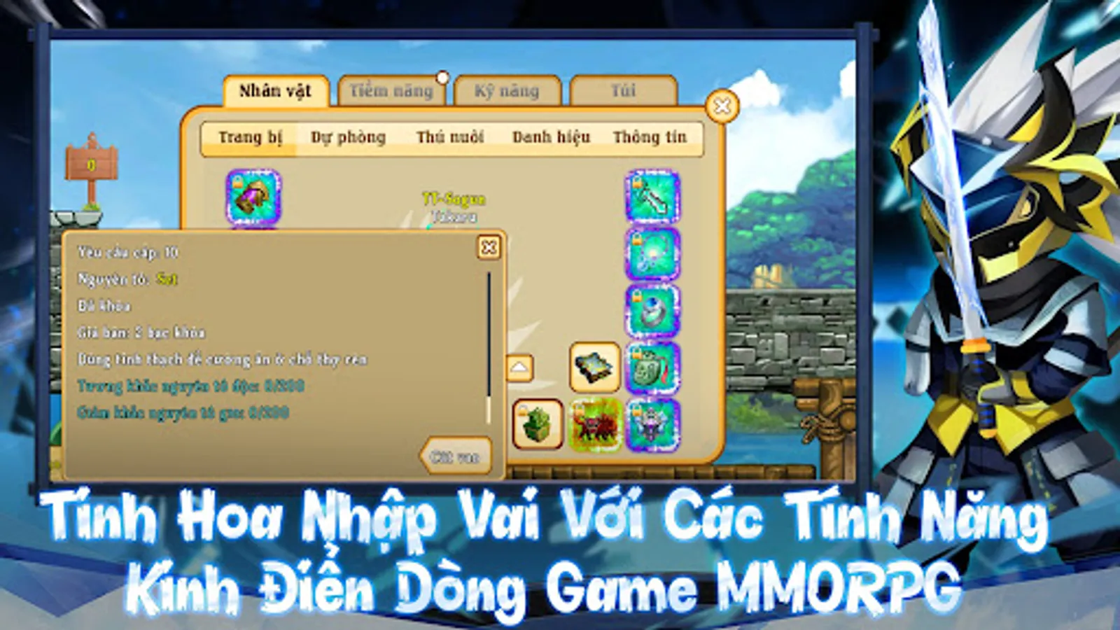 - Rich appearance: Disguise, mounts, pets, flying ... increase strength and create a personal appearance, class for you.