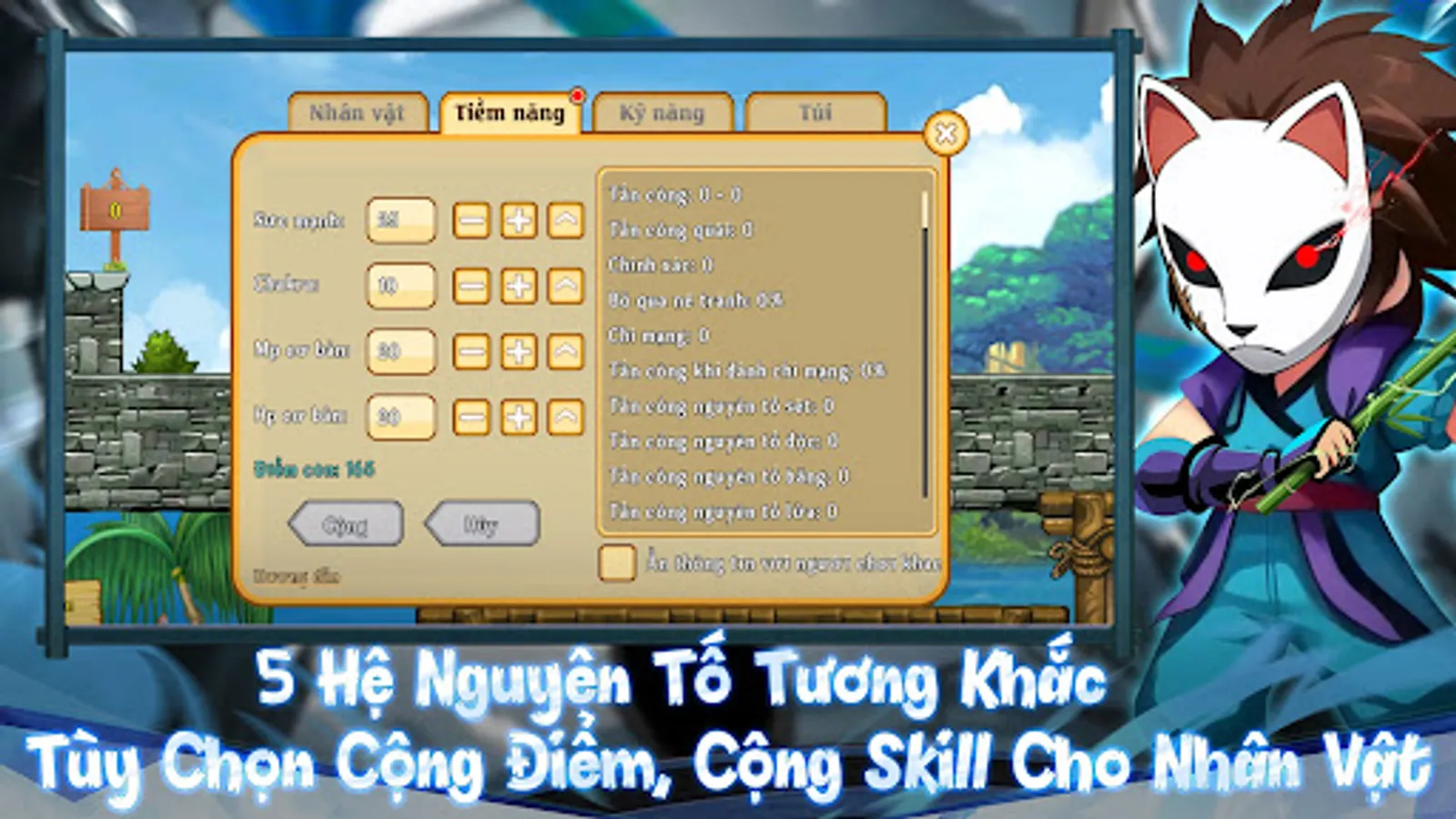 - No Combat Power, no VIP level: The strength and weakness of the character depends entirely on the attributes of the equipment, the contrasting sects and the player's controllability. The game has 5 character class systems developed according to the five elements system with mutual compatibility, thereby giving players a variety of development directions and character customization.
