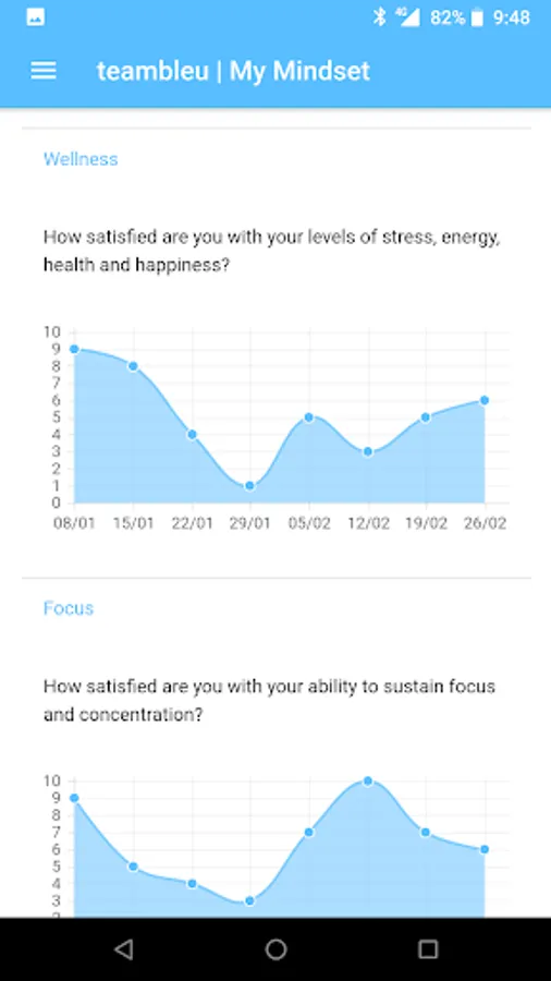- Keep an eye on your mindset by monitoring how your wellness, focus, productivity and inspiration are tracking over time.