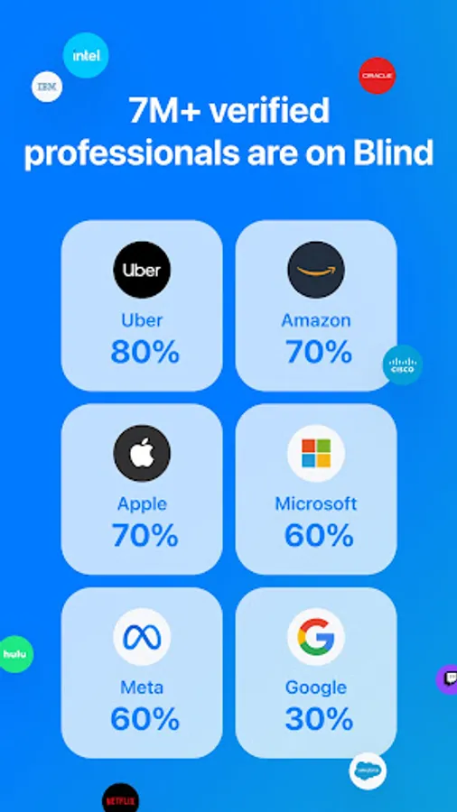 Blind has more than 9 million verified professionals at more than 300,000 companies, including: