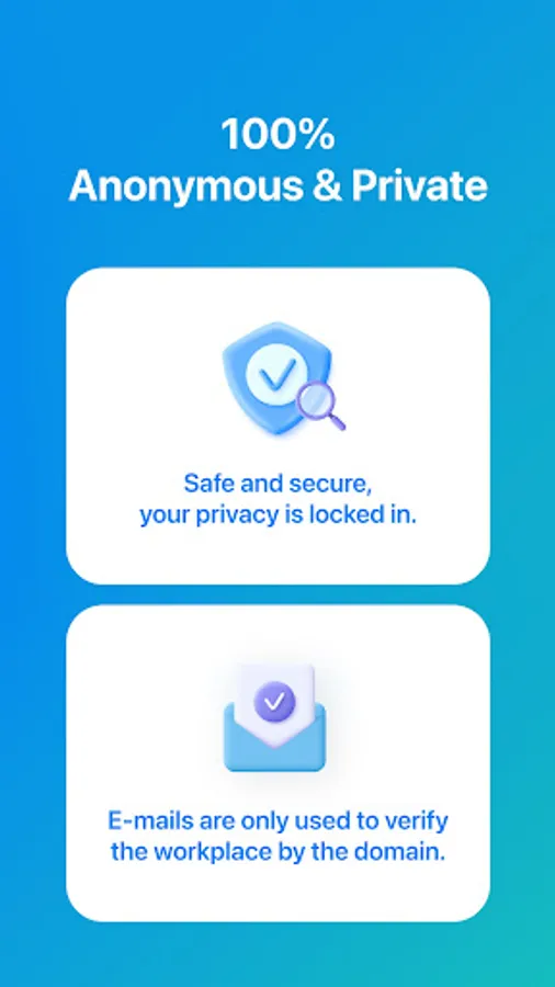 Sign up with your work email to get the most out of Blind! Protecting your anonymity is our top priority. We use work email addresses to verify your current place of work but your personal information is not collected and emails are not stored. Thereby providing you a secure platform to communicate with coworkers and fellow professionals.