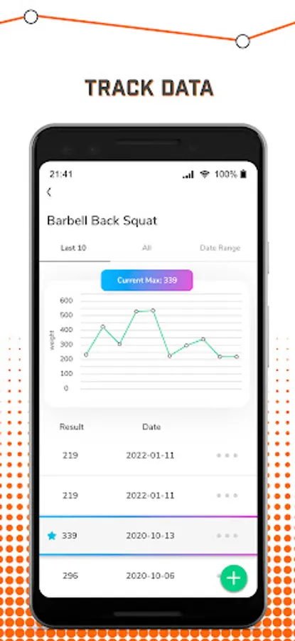 - Store all your exercise history, including 1RM’s and other PR’s, in the mobile app complete with linear graphs