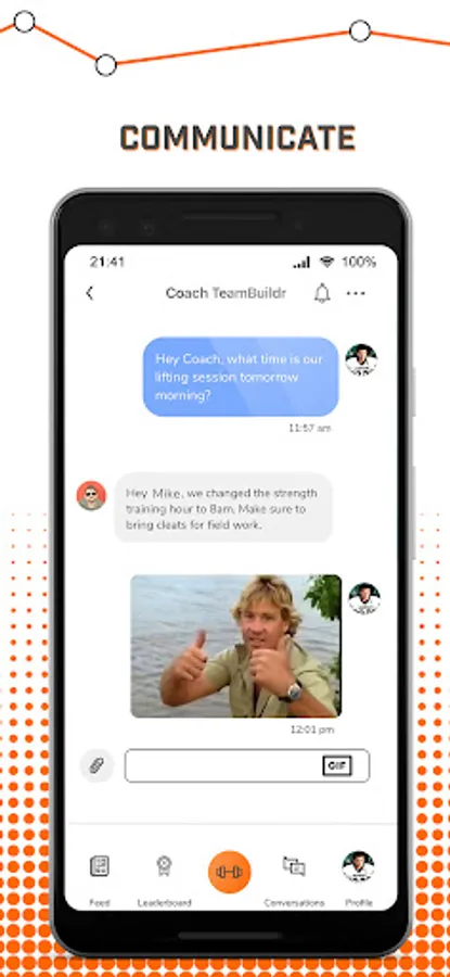 - Message your coach, friends and teammates in-app or share pictures and video on the Feed