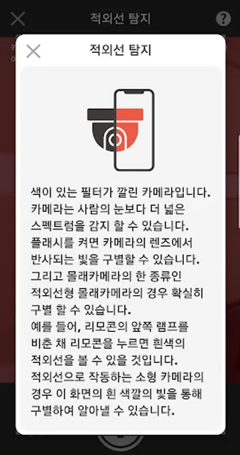 4-2) When the camera detects a suspect, the measuring system turns red! This means that there is a high likelihood of having a camera.