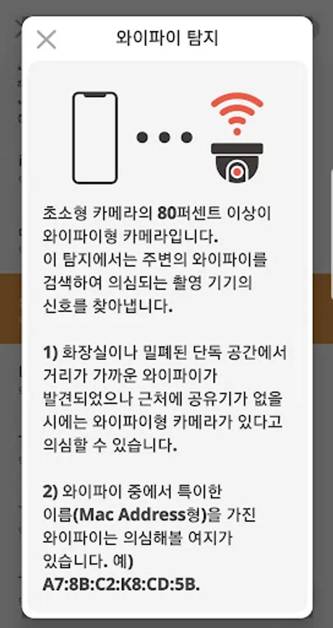 3) Among WiFi, there is a hidden WiFi without a name. Various peripherals use this Wi-Fi as a signal. If such a device is found close in a bathroom, etc., the camera may be suspected.