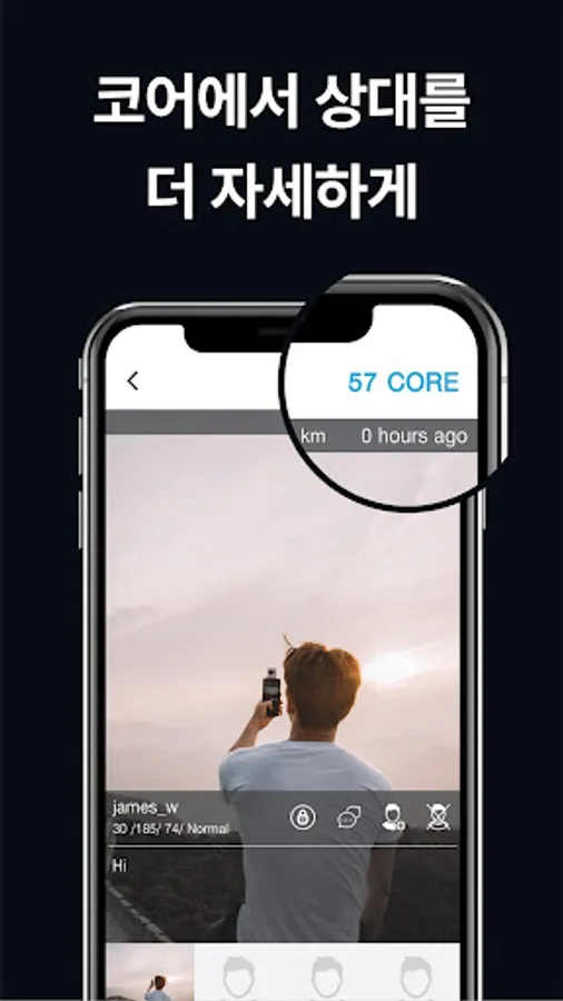 Core provides a timeline to upload 30 posts, photos, and voice recordings in [My Core], a space where you can reveal yourself more honestly, including 4 basic profile pictures.