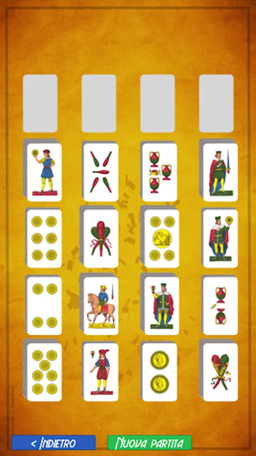 Solitaire with cards Italian. When stacking the game it consists in increasing order, and by seed, all the cards on the table.