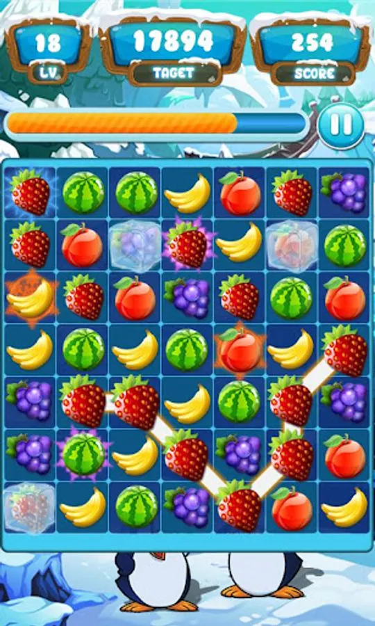 - thực hiện kết nối nhiều trái cây cùng loại 1 lúc sẽ giúp tăng lượng điểm có được và nhanh chóng đạt mức điểm yêu cầu ở từng level