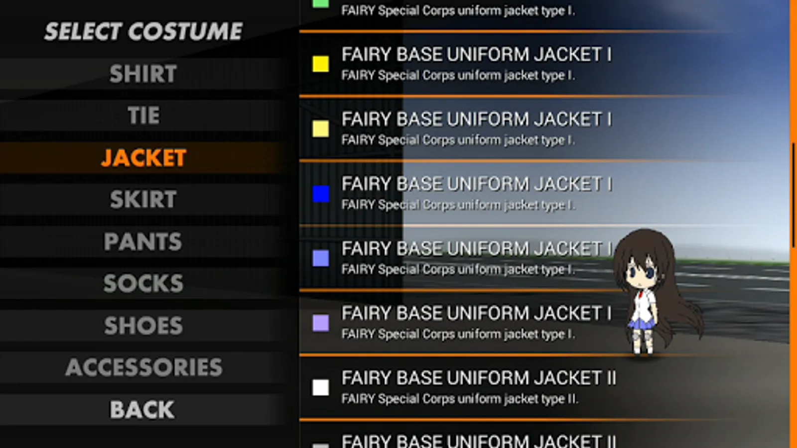 You can customize weapons, costume, call sign and appearance of moe girl(cute girl) character.