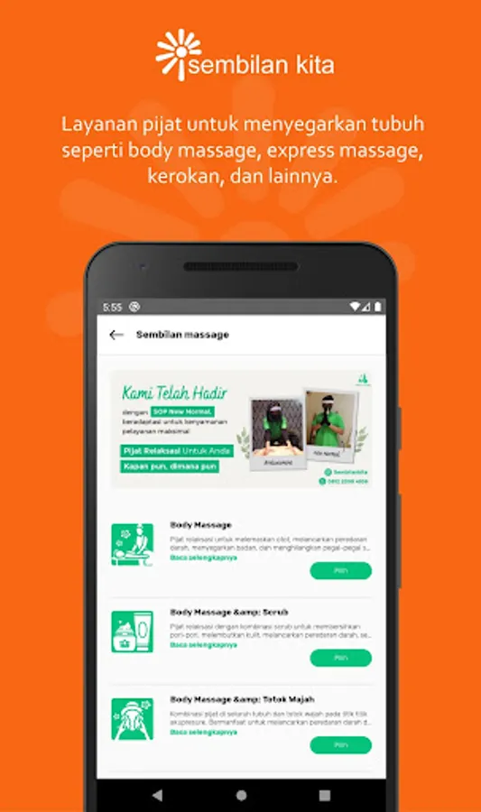 A solution in the midst of a pandemic with the Nine Kita application. Applications for ordering services: Health Massage on call (Nine Massage), Home/Office Cleaning Services (Nine Clean), and online vegetable food needs to kitchen spices (Nine Tani).