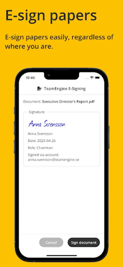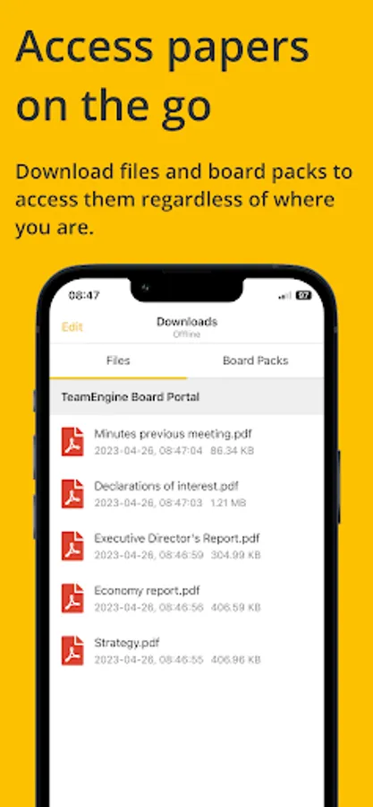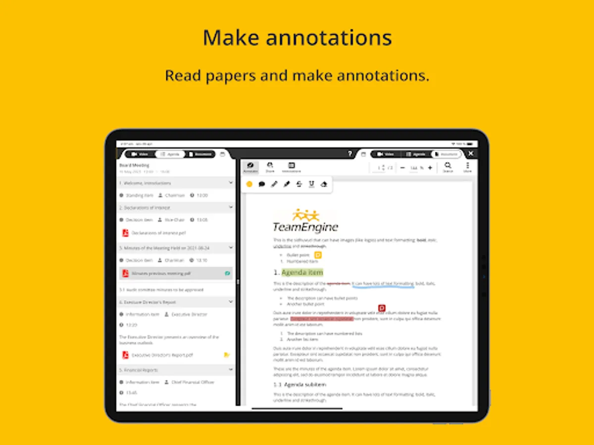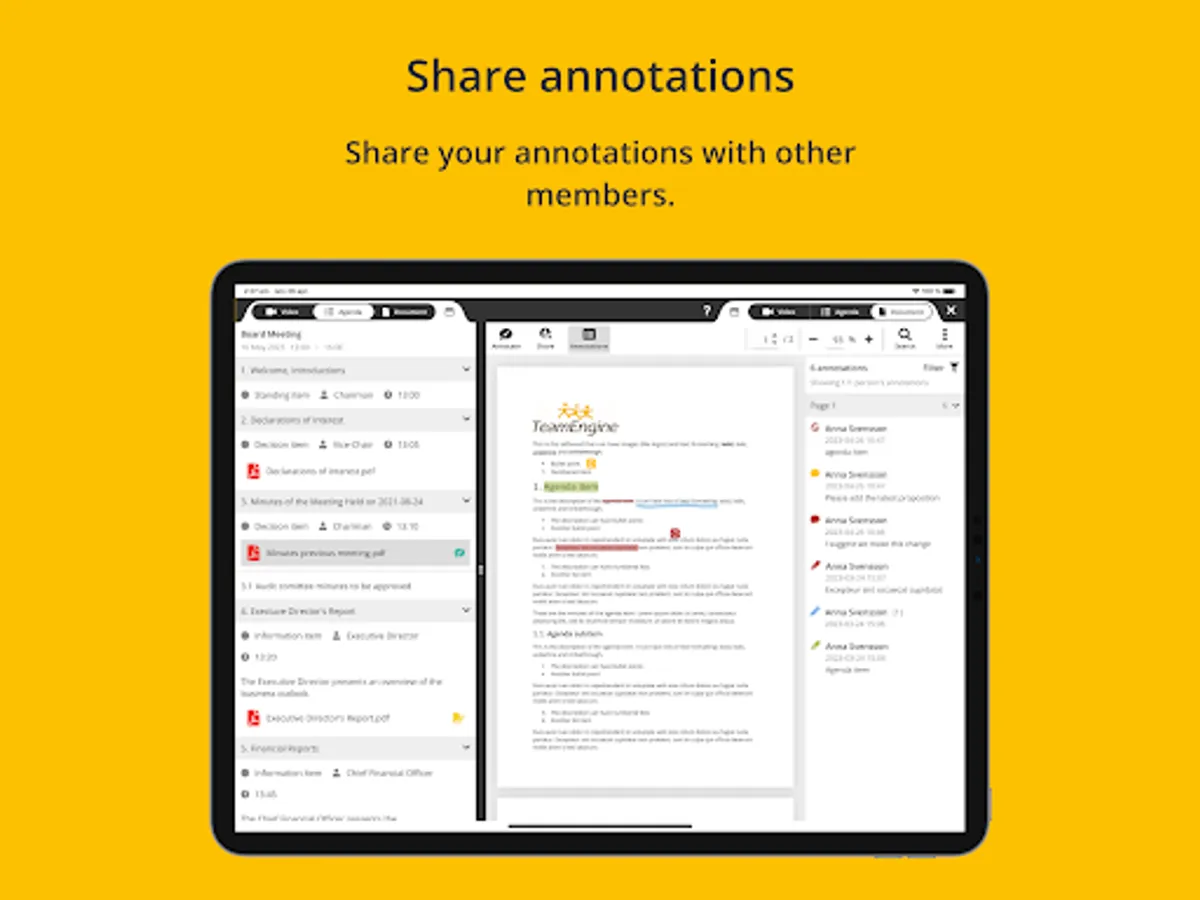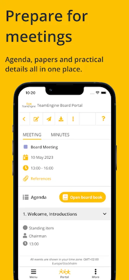 Get a clear overview of all future meetings and access agendas, papers and practical details all in one place. Read papers and make annotations that can easily be shared with other members. Download files and board packs to access them offline. You can e-sign papers with a secure digital signature, regardless of where you are. Use forums in your portal to share your opinions, participate in polls and communicate with your colleagues.