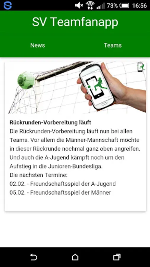 The new app is fully designed for interaction. Of course also includes all the news around the SV Hesalch App: So you're always informed. With the app for the SVH and you're in any place and at any time very close to your club. Thanks to a completely new design and the operation of the app is now easier and more intuitive thanks to a clearly arranged menu takes you quickly and easily cope.