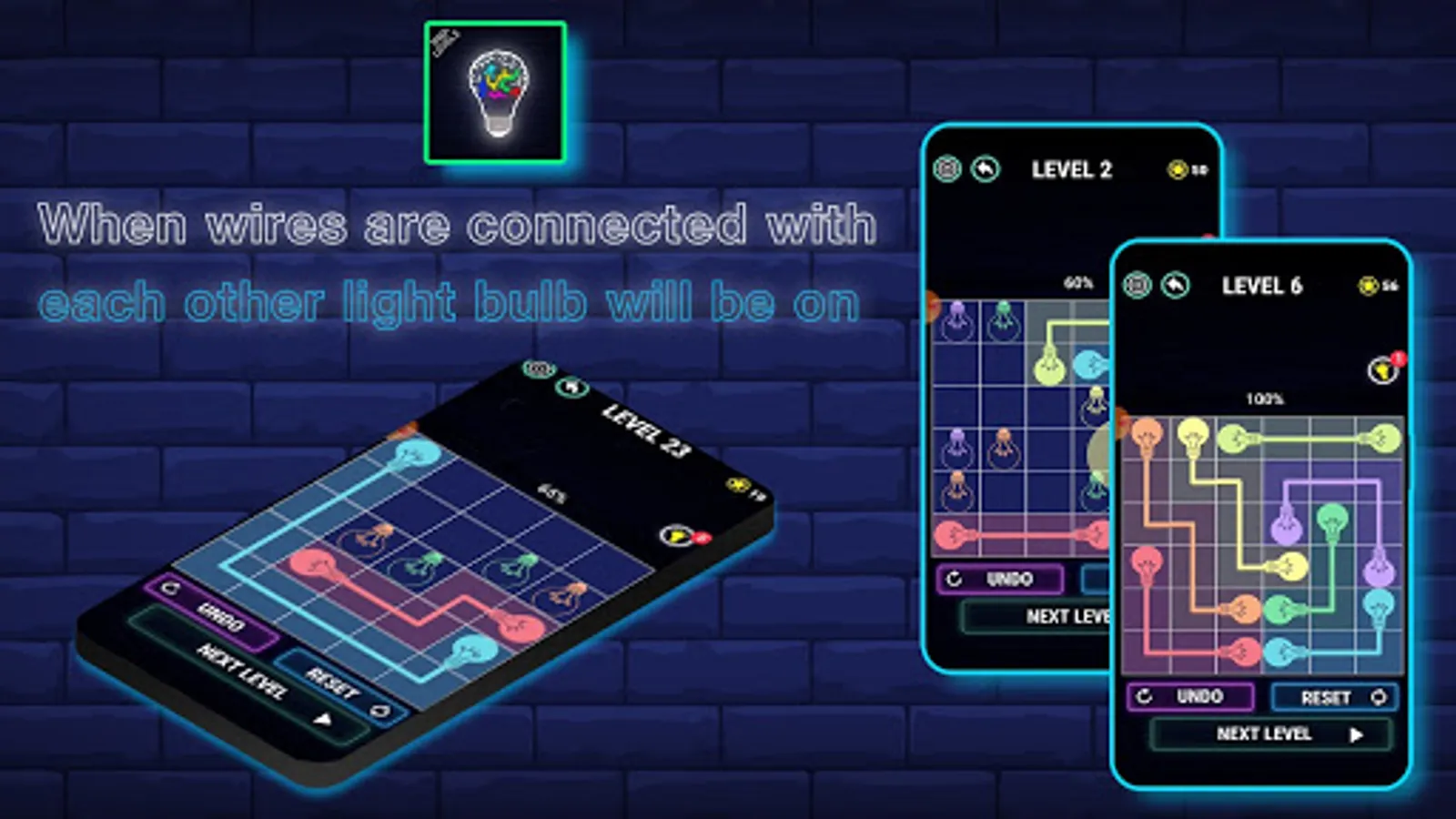 The bulbs asks player to Connect Me as if you will not connect the level can not be completed. If you Connect the Dots in correct way in one time then you will get a wheel which important to unlock other levels to play further.