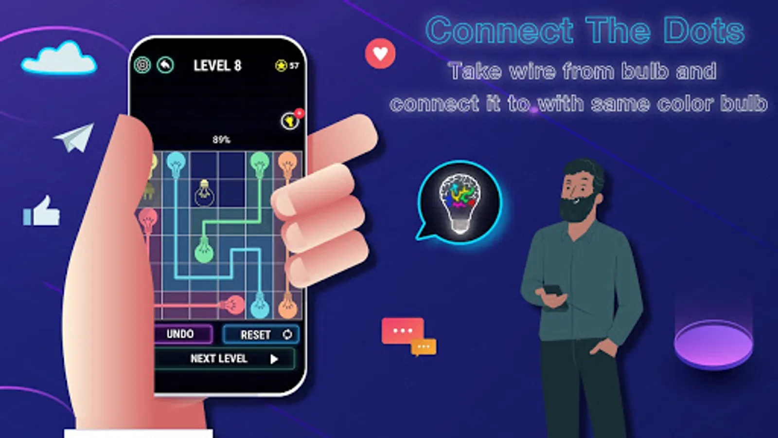 Mr Connect is very good puzzle game for puzzle lovers. Join the wires of bulb of same color by covering 100% board space.