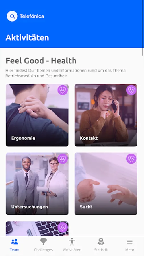 o2 Telefónica Feel Good combines team building and activity in one app. It is the APP for you and your colleagues.